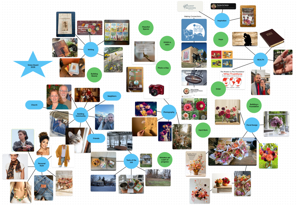 Yesterday I made a vision board to give me focus and inspiration for the upcoming growing season. I’ve never done this before, but I saw Erin at Floret talk about one she did a while back, and decided to craft my own! I prefer physical media, but didn’t have any magazines to chop up, so it quickly morphed into digital.