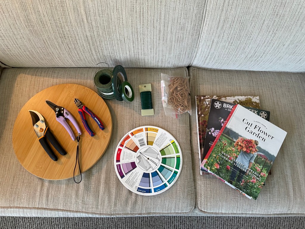 Inspiration – I know, it’s not technically an ITEM in my toolkit, but it think it’s critical if you’re someone like me who loves flowers, but is really trying to make the shift from simply putting blooms into a vase to crafting making beautiful. I do have some books on my shelf, but most of my inspiration lately has come from the internet, especially Florists on Farms. I absolutely love Maria’s colors, arrangements, designs.
