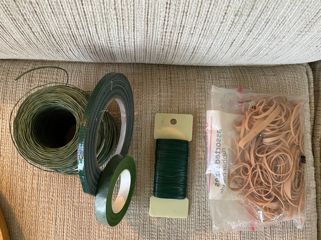 Twine and rubber bands – This is for holding stems in place after arranging.