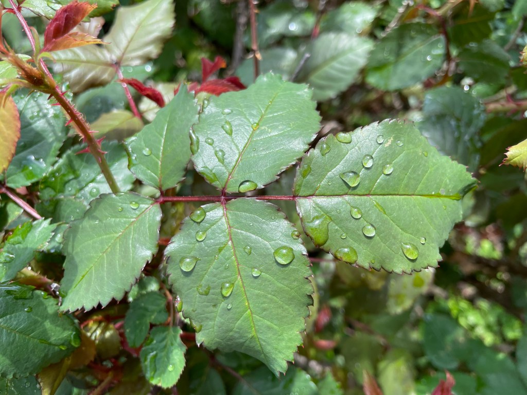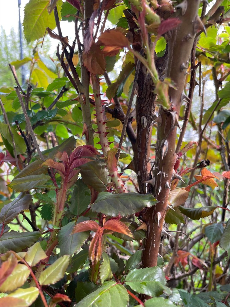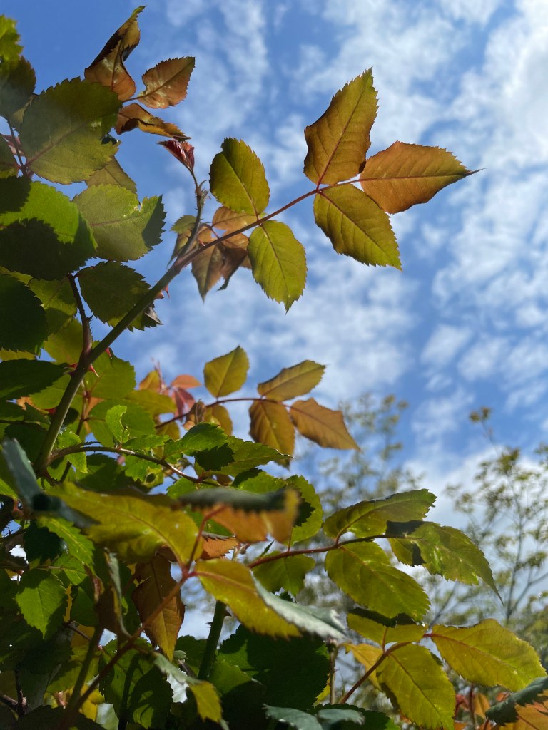 First, I should clarify. You may be wondering why I’ve never seen my rose’s leaves before, why I’m swooning over them like a teenage crush. This isn’t my plant. I offered to prune a neighborhood memorial garden, and stopped dead in my tracks when I saw this one particular bush. The others were exactly what I expected, but not this one.